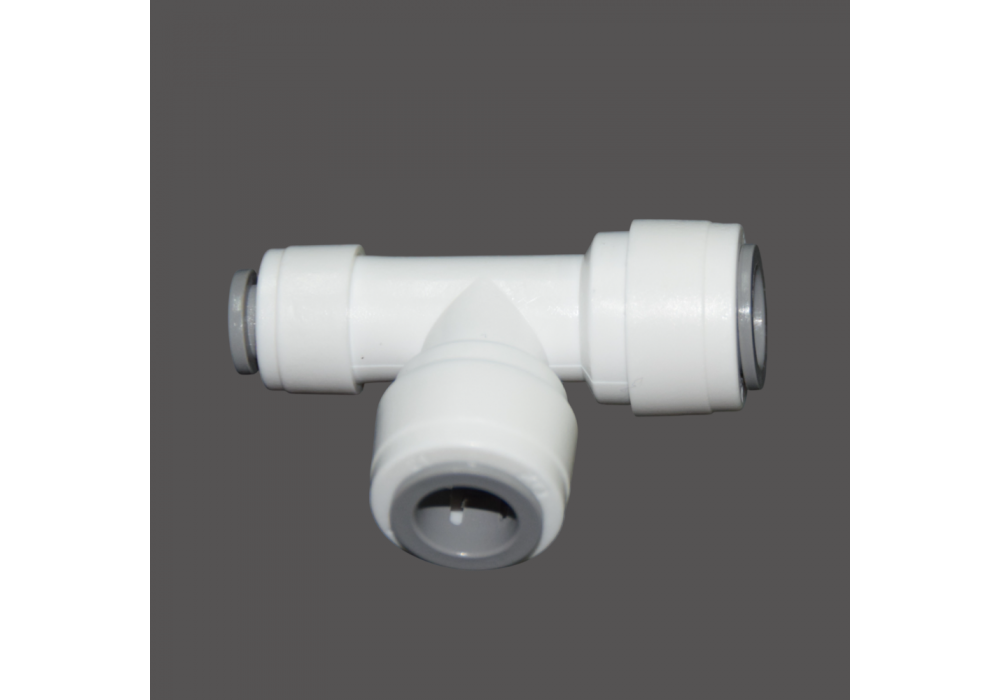 If you have any questions, you can contact our managers in any convenient way for you. Connecting tee 3/8 JG (tube 10 mm) -3/8 JG (tube 10 mm) -1/4 JG (tube 6 mm) - on quick-release connections. The tee is designed to connect plastic tubes with a diameter of 10 mm and 6 mm in water supply and water purification systems. It is used to branch the flow between tubes of different diameters.