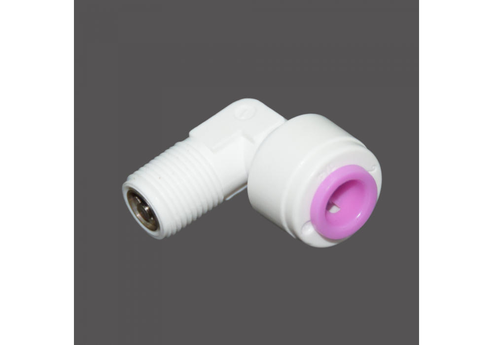 If you have any questions, you can contact our managers in any convenient way for you. Quick-release angle fitting 1/8" male thread - 1/4" JG tube 6 mm with valve. The fitting is designed for installation in the membrane housing of the reverse osmosis system. The built-in check valve prevents backflow of water.