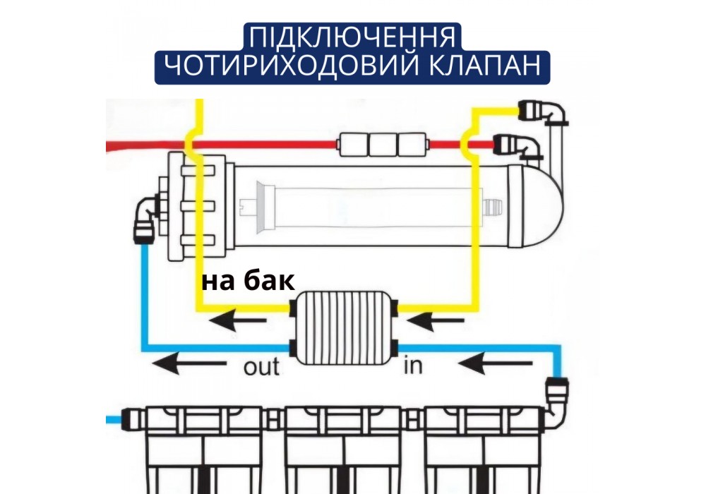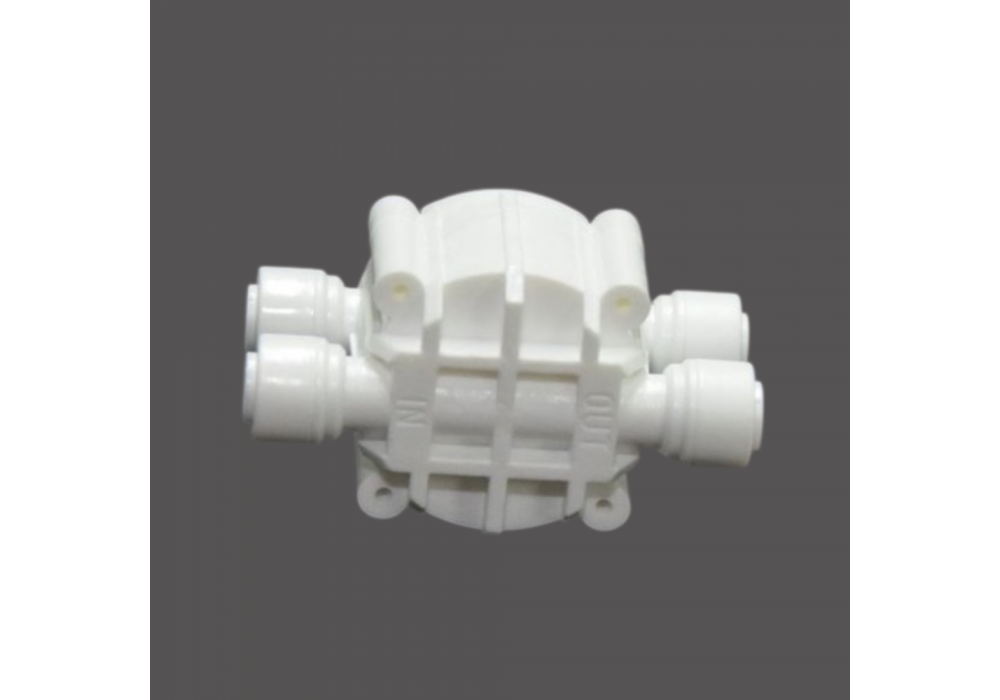 Чотириходовий автоматичний клапан (4-way valve) — це ключовий елемент системи зворотного осмосу, який автоматично регулює подачу води до мембрани та зупиняє фільтрацію при наповненні накопичувального бака. Забезпечує економне використання води та продовжує ресурс мембрани.Функції:Автоматичне відключення подачі води при заповненні бакаПоновлення фільтрації при зниженні тиску в бакуЗапобігання зайвому навантаженню на мембрануПрацює без електрики — механічна дія тискуХарактеристики:З’єднання: 1/4" JG (трубка 6 мм)Матеріал корпусу: Пластик Максимальний тиск: до 6 барПродуктивність: підходить для систем до 100 GPD і вищеКомпактні розміри, легко інтегрується в стандартні RO-системиПринцип роботи:Клапан реагує на тиск у накопичувальному баку. Коли бак заповнений — тиск підвищується, і клапан перекриває подачу води до мембрани. Коли тиск зменшується — клапан автоматично відкриває потік...