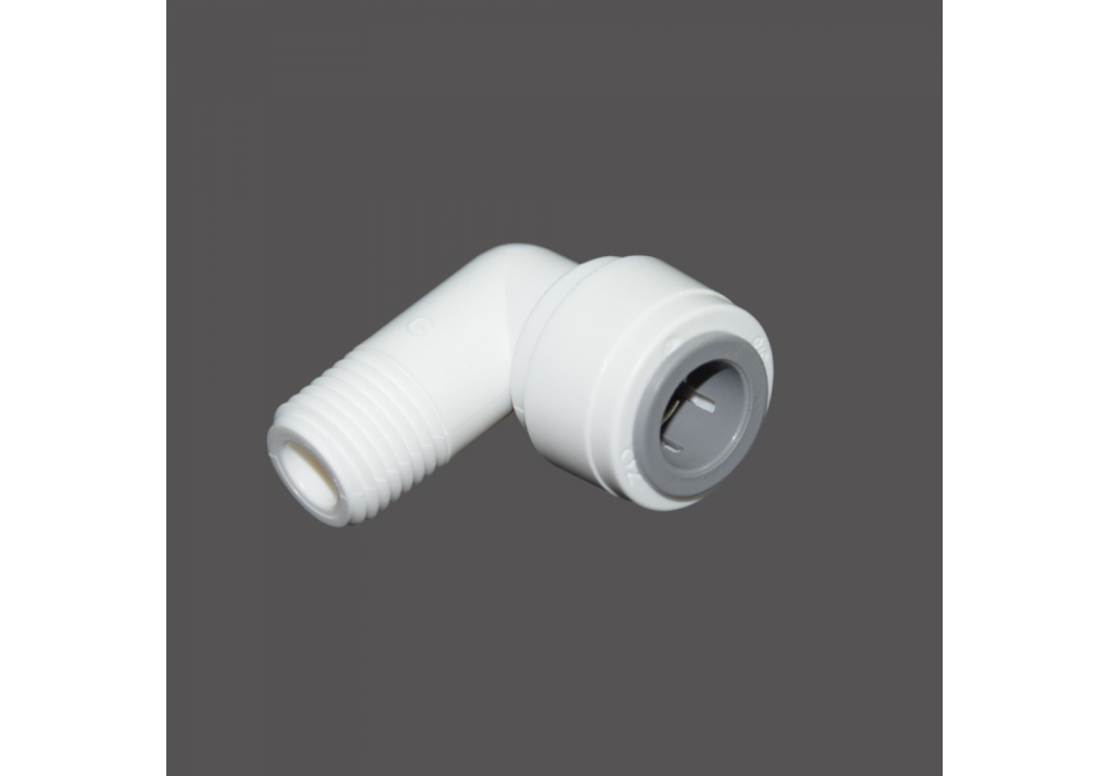 Фітинг кутовий швидкознімний 1/4" зовнішня різьба – 3/8" JG трубка (≈9.5 мм). Фітинг призначений для підключення трубки діаметром 3/8" (≈9.5 мм) до обладнання з 1/4" внутрішньою різьбою. Застосовується в системах очищення води.Характеристики:Тип: Кутовий (L-подібний) швидкознімний фітингЗ'єднання: 1/4" зовнішня різьба – 3/8" JG швидкознімне з’єднання для підключення трубки діаметром 3/8" (≈9.5 мм)Матеріал: пластикПризначення: Використовується в системах фільтрації води.Переваги:-Швидке підключення без інструментів-Надійне герметичне з'єднання-Компактний кутовий дизайн для економії місцяІнструкція з монтажу:- Відрізати трубку перпендикулярно, без задирок.- Вставити трубку до упору у фітинг..